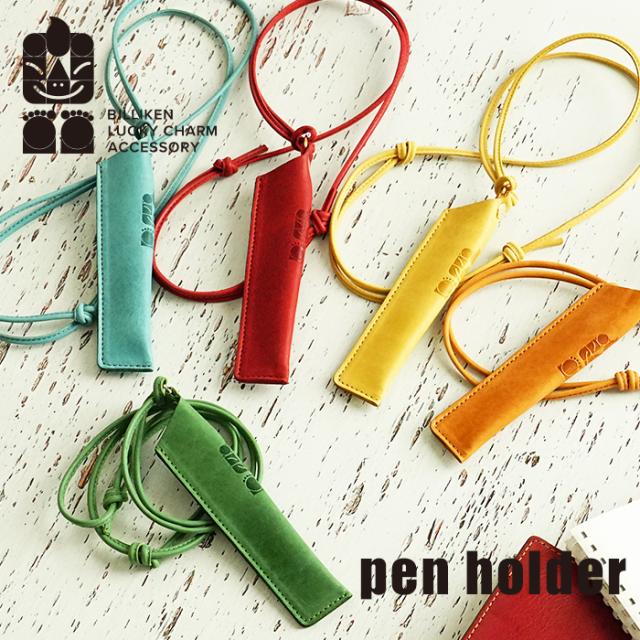ビリケン ペンホルダー ペンケース 1本差し ペン差し キーホルダー ネックレス 首掛け レザークラフト 革小物 牛革 おしゃれ ギフト プレゼント 【BILLIKEN】