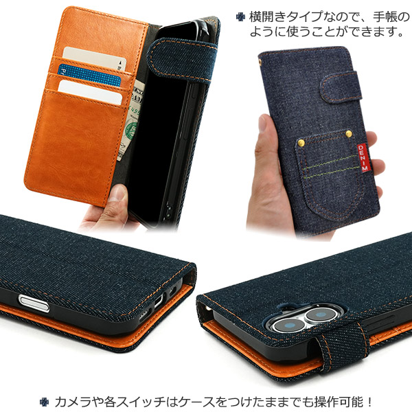 ポケットデニムデザイン手帳型ケース