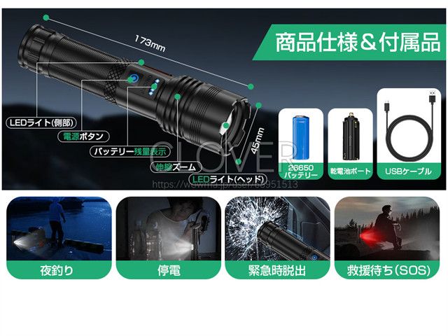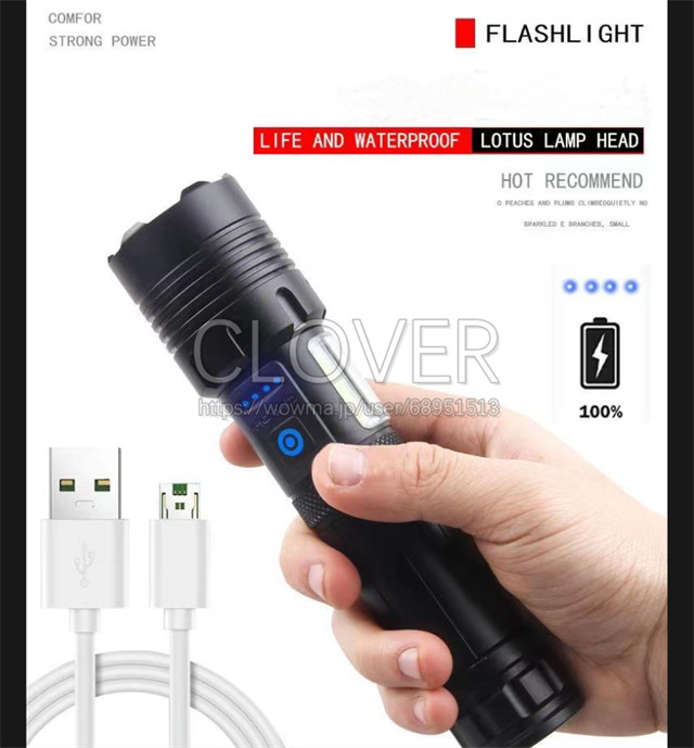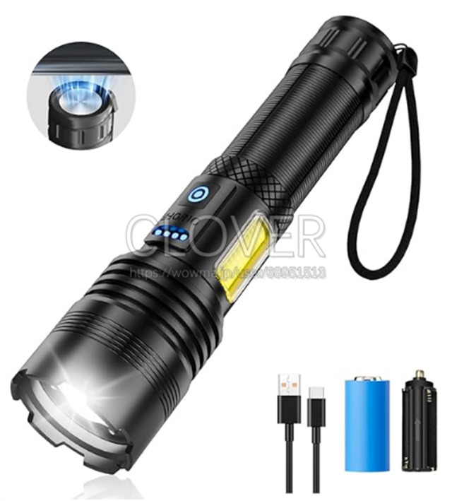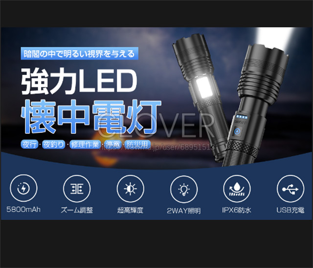 懐中電灯 ledライト 懐中電灯 強力 フラッシュライト 大容量5800mAh Type-C 充電式/電池式 ハンディライト 軍用 最強 Flashlight 小型 タクティカルライト COBライト IPX6防水 ズーム調整