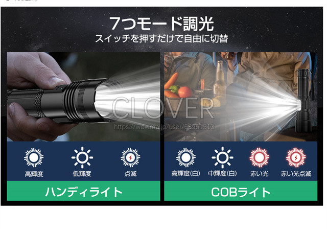 全部7つの調光モードがご使用いただけ、防災、救援、山登りなど様々なシーンに対応できます。