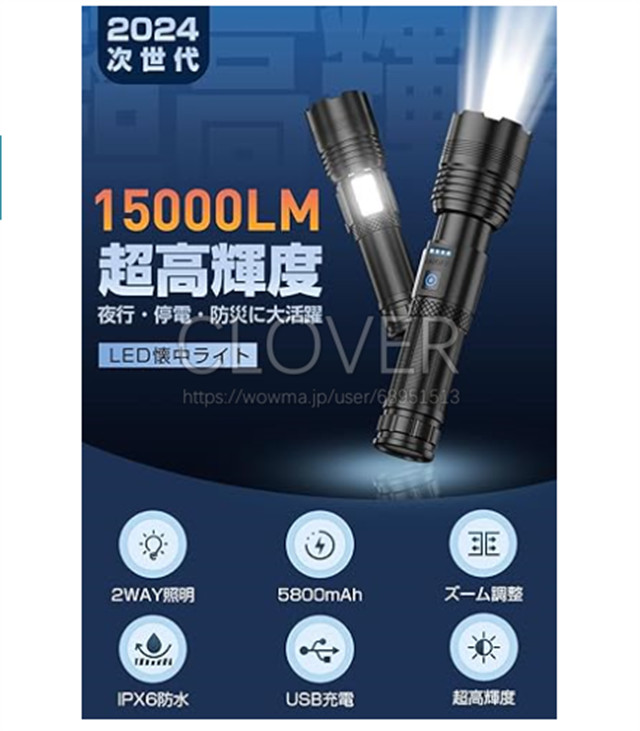 ※この懐中電灯は使用後、電荷や静電気などの原因で短時間でも微弱な光を放つことがありますが、これは正常な現象です。