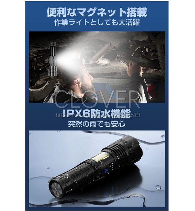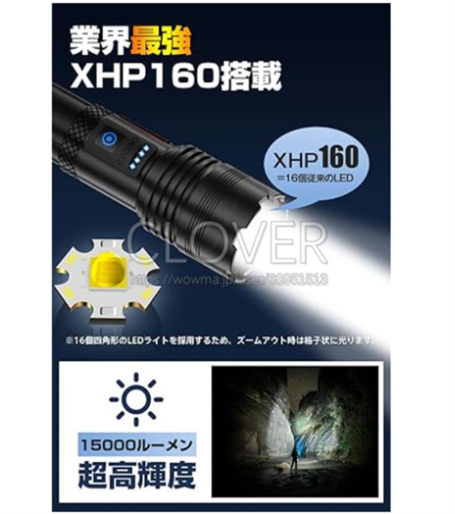 先端のXHP160チップを搭載しており、15000LM強力な光源を提供します。コンパクト軽量設計の上、耐久性と防水性も優れています。また、光の強さやモードが調整でき、屋外活動にすごく頼りになるツールです。