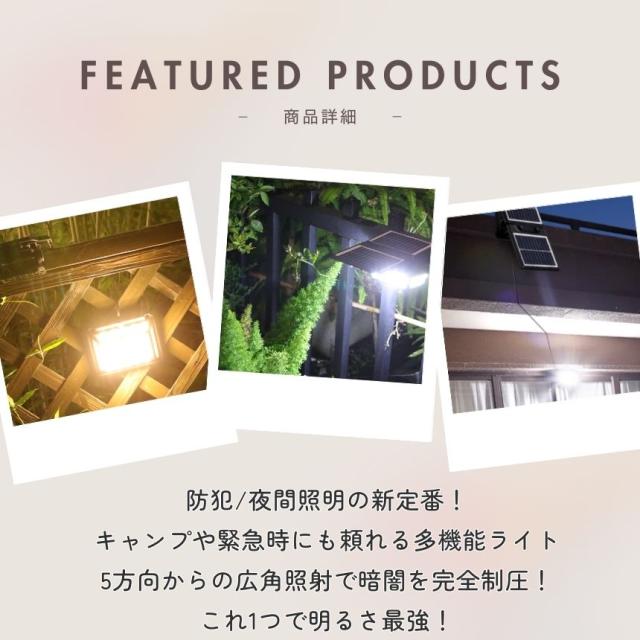 防犯灯、庭やバルコニーの照明、災害時の非常灯など、さまざまなシーンで活躍します。高い実用性と省エネ設計を兼ね備えたこのライトは、環境にも配慮した選択肢です。
