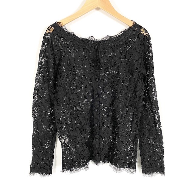 【中古】ナイン NINE 総レースブラウス シャツ 長袖 ブラック 黒 F レディース