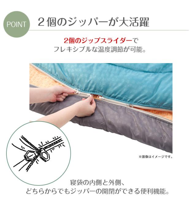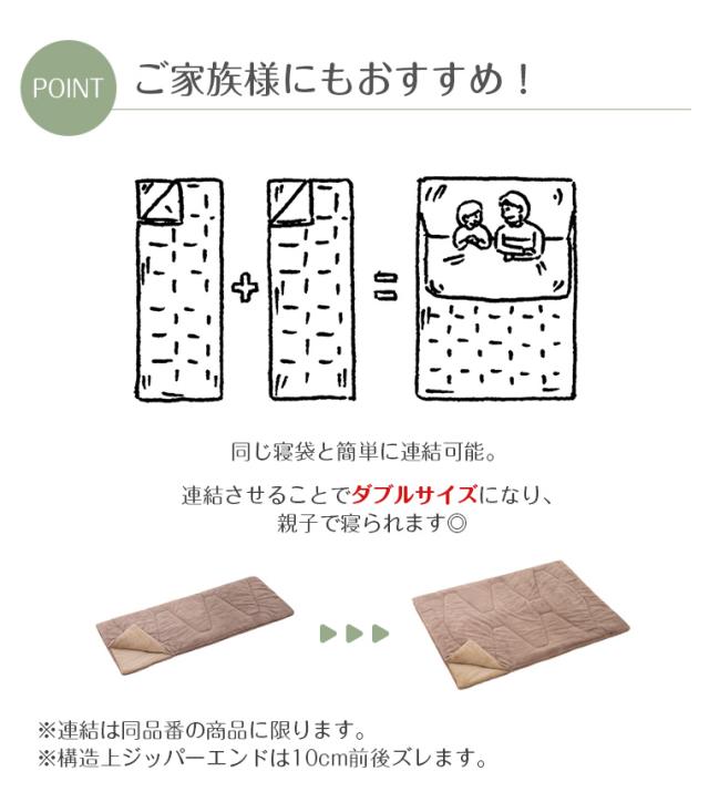 同一シュラフで連結してW サイズにすれば親子で添い寝もできる。