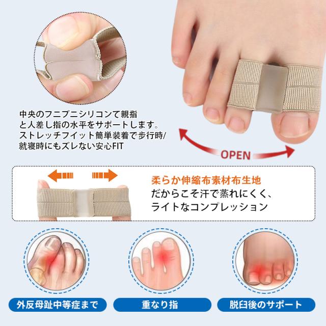外反母趾 サポーター 足指サック 左右セット 4枚 足指 親指 指先 簡単 装着 フィット 柔らか 伸縮 素材 保護 シリコン パッド 睡眠