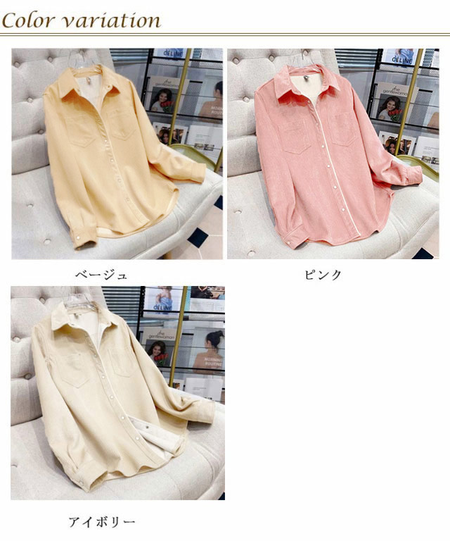 | 秋秋スタイルに!着回しにも便利なコーデュロイシャツ ゆったりとしたロング丈デザインでさりげなく体型カバーできます。 ハリのあるコーデュロイ地で仕上げておりシワになりにくいのも魅力 トップスとしても、さっと羽織ってアウターとしても使える優秀アイテム! 秋カラーが大人可愛い◎1枚持っておくと重宝するアイテムです | |
