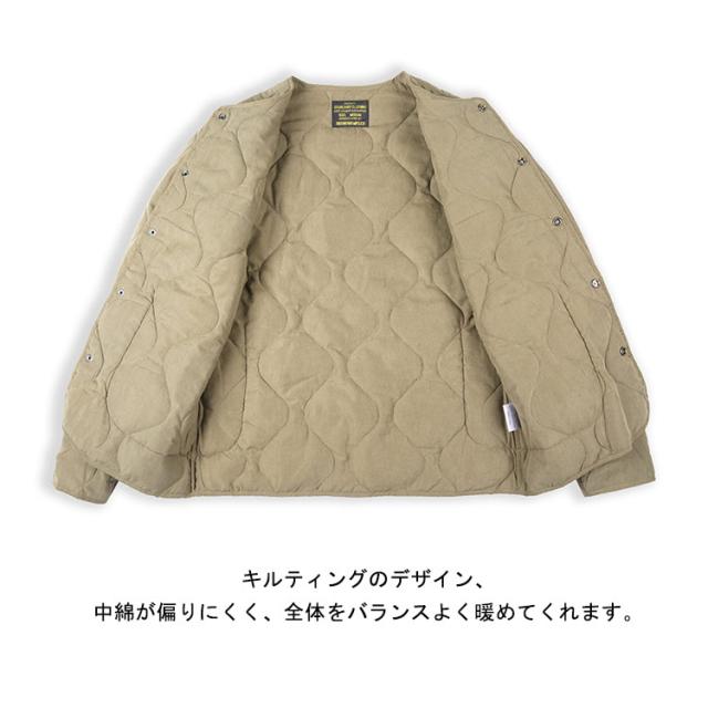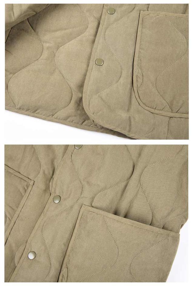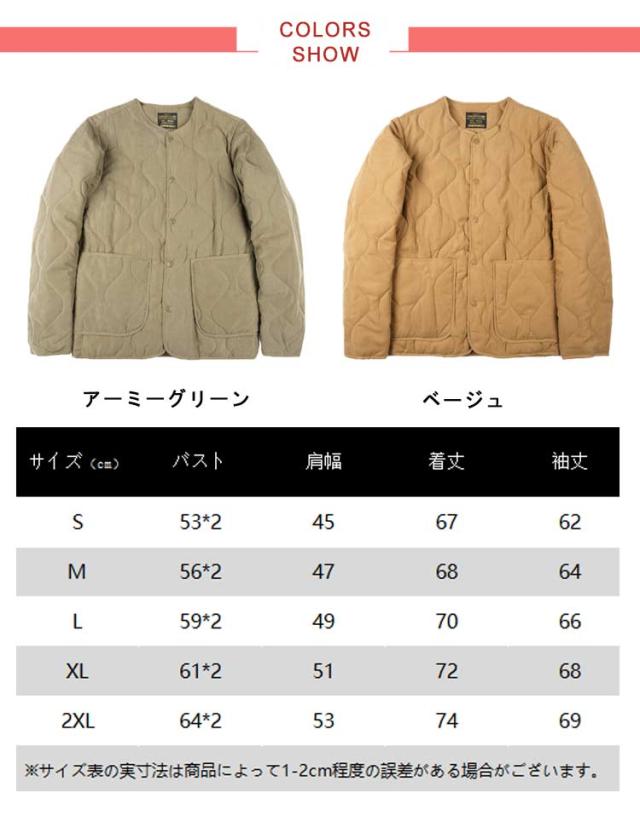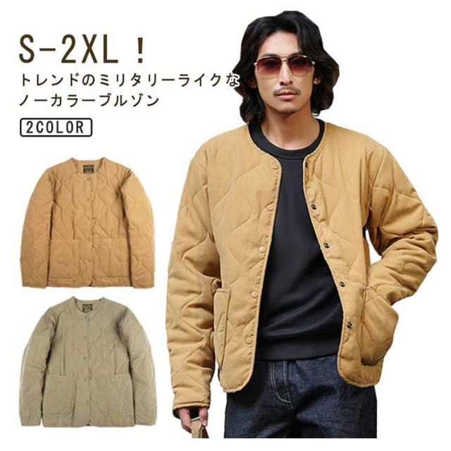 | S-2XL!トレンドのミリタリーライクなノーカラーブルゾン とっても軽い上にしっかりとした防寒性があり暖かいのが人気の秘訣。 キルティングのデザイン、中綿が偏りにくく、全体をバランスよく暖めてくれます。 首元は、人気の高いノーカラータイプでスッキリとした 印象をキープ。 アウターとしてはもちろん、室内で肌寒い時に羽織ったり、車移動やワンマイルウエアとしても大活躍! 真冬にはロングコートのインナーとしても活躍してくれる優れモノです。 | |