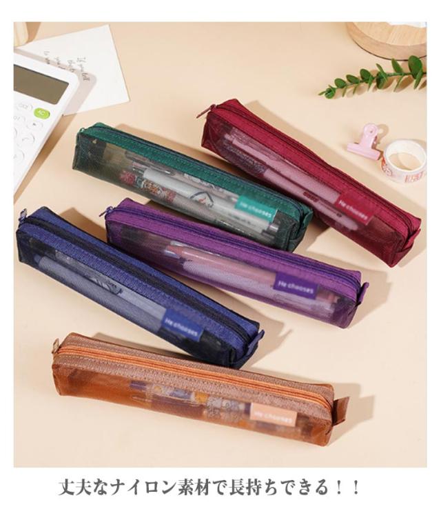 クリア ペンケース おしゃれ 【2個セット】メッシュ シンプル ペンポーチ 透明 筆箱 薄型 鉛筆入れ ペンポーチ 中身確認 入学祝い