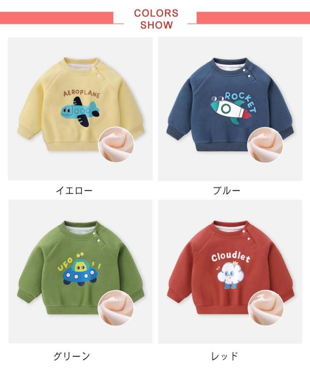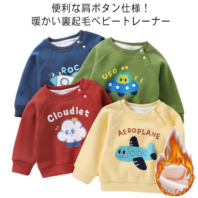 トレーナー ベビー キッズ クルーネック 子供 赤ちゃん 裏ボア 肩ボタン 長袖 ジュニア トップス あったか 防寒 ベビー服 子供服 トレーナー 可愛い 服 おしゃれ かわいい 男の子 女の子 暖かい 防寒着 ギフト プレゼント