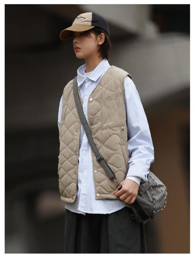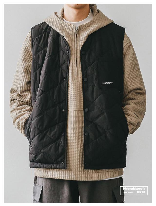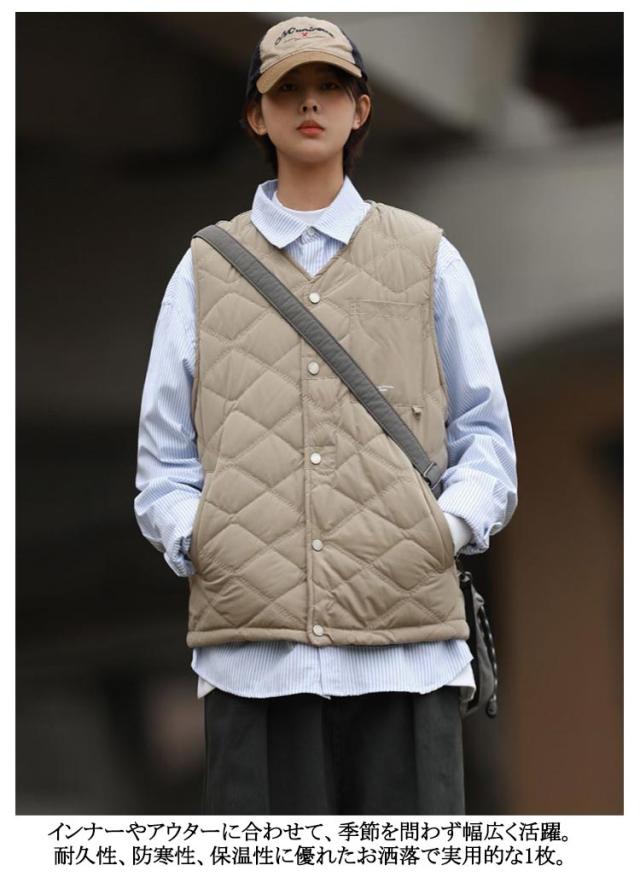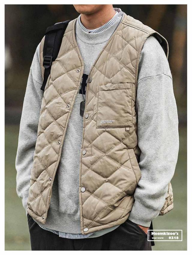| 季節の変わり目や、肌寒い日のレイヤードスタイルに最適なキルティングベスト。 軽量ながら中綿入りでしっかりとした防寒機能を備え、シャツやパーカーの上に重ねて、秋から冬までの多様なスタイルに対応。 すっきりとしたシルエットながら、動きやすく快適なフィット感を実現。胸ポケットがちょっとしたアクセントになっています。 軽量でかさばらない為、アウターにもインナーにも利用可能。ガシガシ着て汚れたら洗える手軽さも嬉しい。 インナーやアウターに合わせて、季節を問わず幅広く活躍。耐久性、防寒性、保温性に優れたお洒落で実用的な1枚。 | |