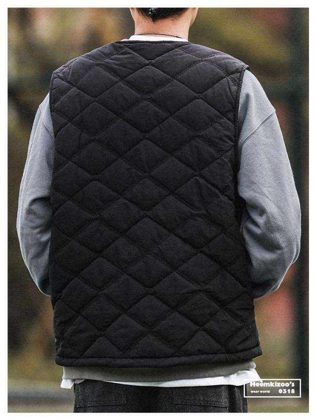 キルティング ダウンベスト インナーダウン ベスト 軽量 中綿ベスト アウター 冬 メンズ 暖かい ノーカラー コート メンズ キルティング レイヤード 重ね着 ポケット付 中綿 ミリタリー インナー 秋 カジュアル 大きいサイズ 春秋冬 ブラック