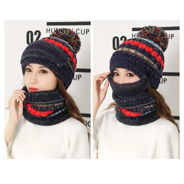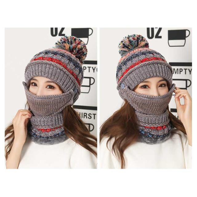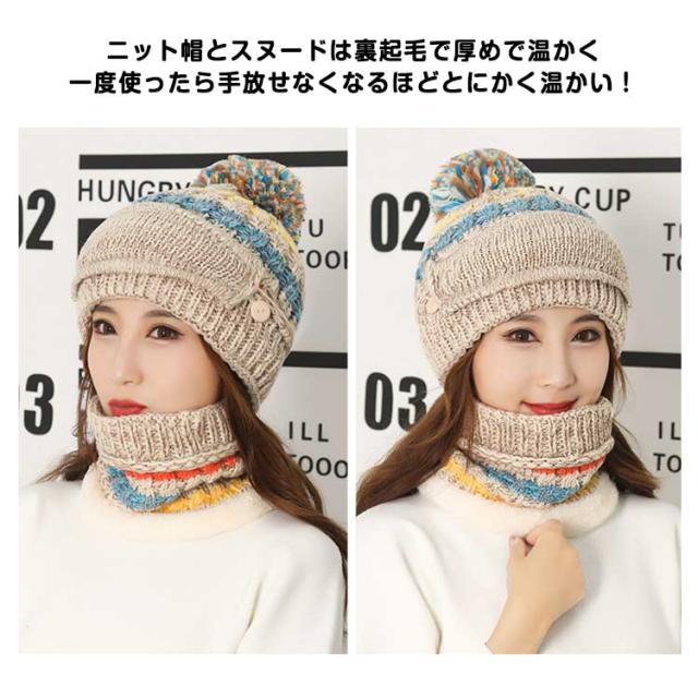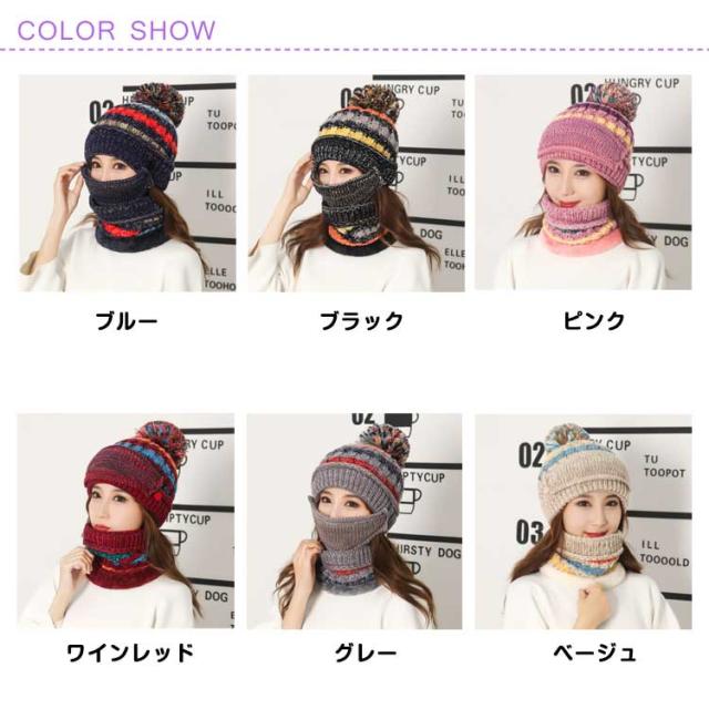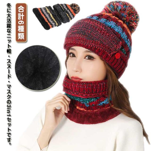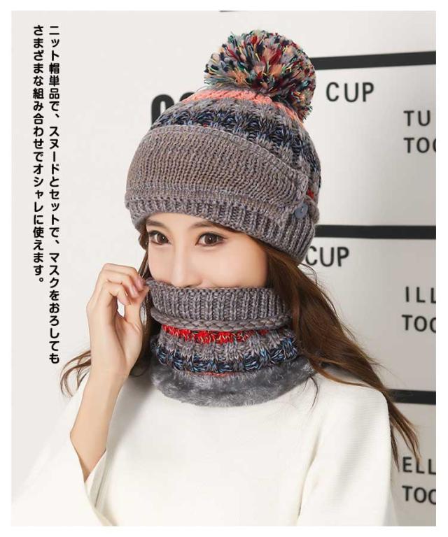 レディース ニット帽 ニット帽 裏起毛 セット ネックウォーマー マスク ポンポン ボンボン かわいい おしゃれ 帽子 ニット 冬 耳当て 3way クリスマス