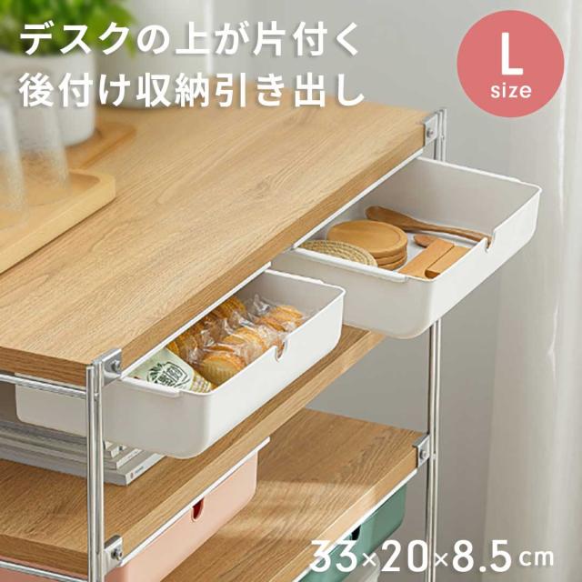 収納 デスク下収納 ホワイト Lサイズ 引き出し 後付け 収納ボックス 工具不要 机下収納 デスク下 机下 収納ケース 収納トレー 取付け 隠し式 デスク整理 小物整理 おしゃれ シンプル 雑貨 便利アイテム 便利グッズ 整理整頓 文房具 事務用品 オフィス 事務所 学校 キッチン 浴室 洗面所 メイク 小物入れ 隙間収納 デスク DIY トレー スライド収納 デッドスペース