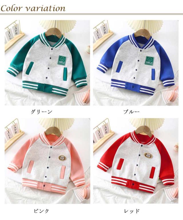 女の子 ジャケット 秋 アウター 100cm ジャンパー ジュニア スポーティー 子供服 子ども服 キッズ ブルゾン 送料無料 上着 こども 冬 男の子 スタジャン 防寒 袖切り替え 野球 女子 男子 小学生 園児 90cm 春 110cm 120cm 130cm 140cm 150cm