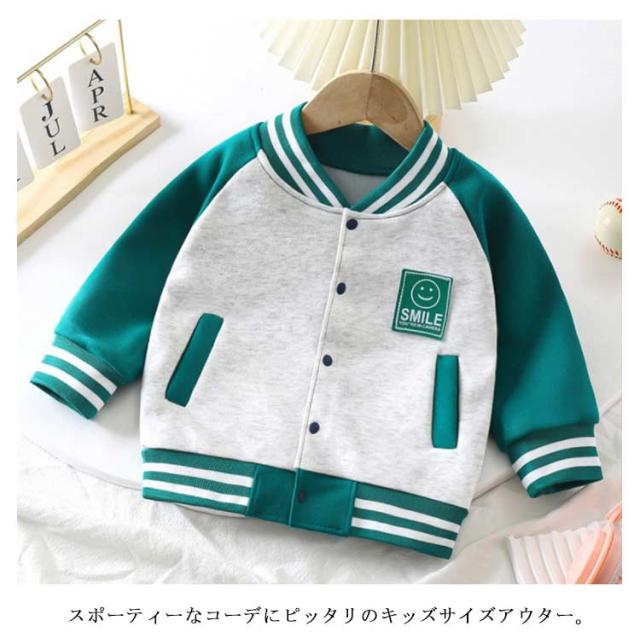 | 80cm 〜 160cm カジュアルでおしゃれな子供スタジャン♪ スポーティーなコーデにピッタリのキッズサイズアウター。 | |
