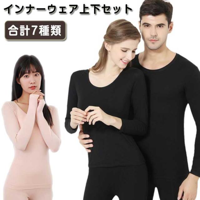 肌着 メンズ 長袖インナーシャツ 発熱あったかインナー ズボン 下着 長袖シャツ 上下セット アンダーウエア レディース レディース アンダーシャツ インナーシャツ ペア ペアルック 無地 吸湿 保温 保湿 軽量 防寒 冬 黒
