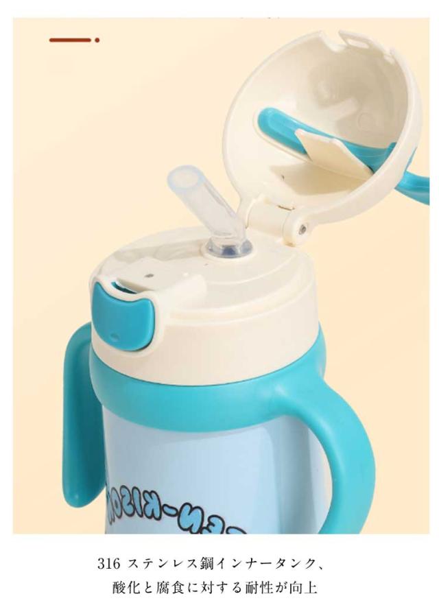 | おしゃぶりタイプとストロータイプの2種類からお選びいただけます。 ワンタッチカバーオープンデザイン、ボタンを押してカバーを開きます。 316 ステンレス鋼インナータンク、酸化と腐食に対する耐性が向上 360°重力ボールのデザインは、赤ちゃんが自分で水を飲む能力を養います。 丈夫で衝撃に強く、ちょっとした事故も心配なし 漏れ防止設計で、蓋を開けて逆さまにしても漏れません。 本体全体は取り外し可能で素早く掃除でき、臭いが残りにくく、汚れや邪気が入り込みにくいです。 一体型ハンドルはあらゆる年齢の赤ちゃんに適しており、持ちやすく、持ちやすいです。 食品グレードのシリコンノズル、柔らかくて噛みにくいため、飲料水をより安全にします。 | |