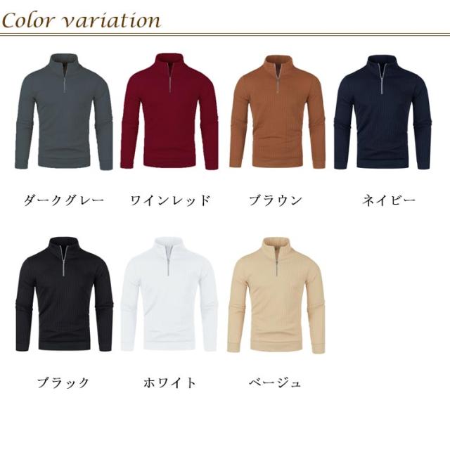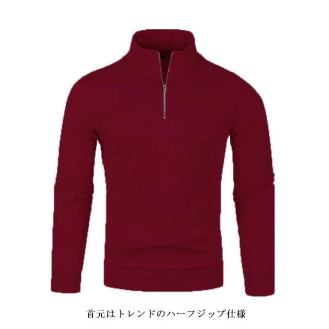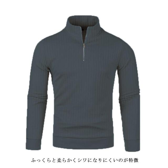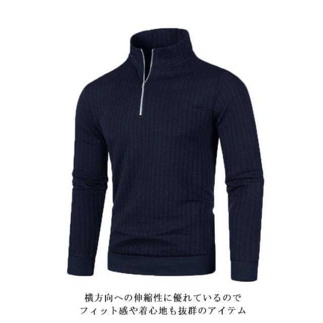 あったか ストライプ ブラック ゴルフウェア おしゃれ 【送料無料】ニット スリム ハーフジップ 【送料無料】ニット リブ編み 防寒 暖かい 黒 シンプル 無地 細身 ホワイト チャコール セーター 白 大人 メンズ 男性 男 服 秋 冬 秋冬 秋服