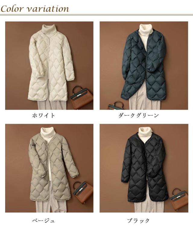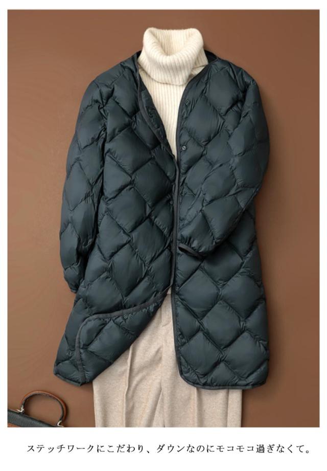 | ダウン60% 美シルエット ライトダウン ナイロン素材を使用し、天然の羽毛をたっぷり詰めました。 美シルエットにこだわり、シンプルデザインで着回しカ抜群! ステッチワークにこだわり、ダウンなのにモコモコ過ぎなくて。 ヒップまですっぽり包み、表地と同素材の裏地つきで防寒性にも優れます。 | |