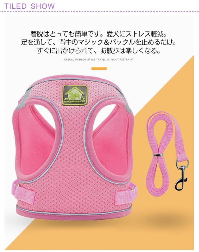 抜けにくい 外出 負担が少ない 胴輪 おしゃれ 小型犬 M 犬用 中型犬 犬 しっかりロック 抜けない 犬具 かわいい メッシュ 簡単装着 犬ハーネスリードセット イヌ 犬 いぬ お出かけ 散歩 ドッグ 通院 ペット