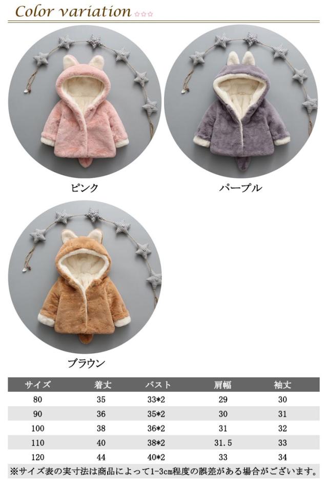 ベビーコート ボア キッズ 防寒 ボアコート プレゼント 110 ふわふわ しっぽ付き ファーコート もこもこ 子供コート 出産祝い ウサ耳 秋冬 冬服 70 80 90 100 アウター 120cm ベビー服 女の子 可愛い