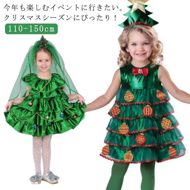 子供 ワンピース サンタ 高校生 おしゃれ クリスマスツリー コスプレ 衣装セット ワンピース ジュニア キッズ レディース コスチューム 140 女の子 かわいい 小学生 中学生 コスプレ 変装 仮装 子供服 110 120cm 130 クリスマスツリー 150