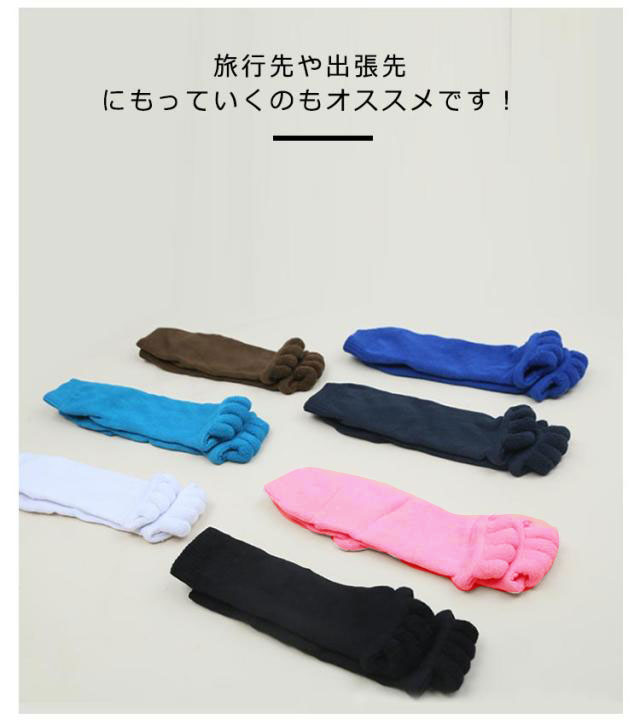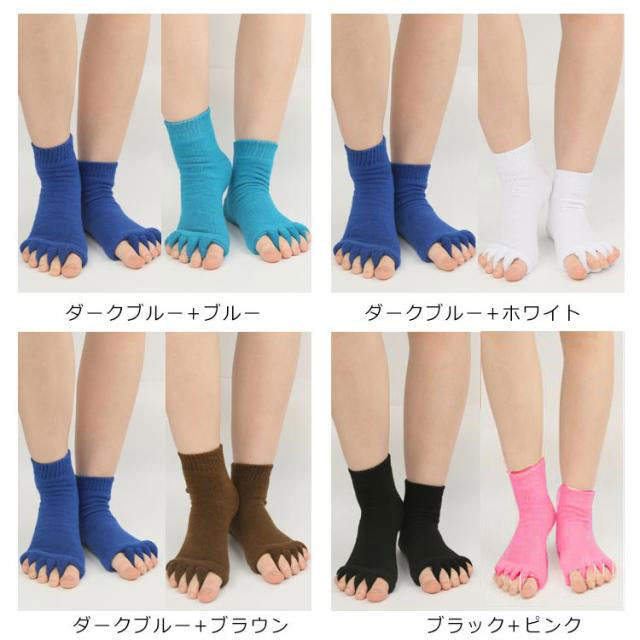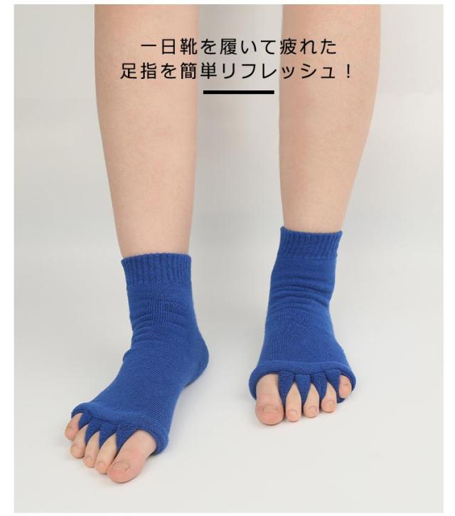 | 【足指ソックス】【 むくみ予防】【2足組】 一日靴を履いて疲れた足指を簡単リフレッシュ! 足指を広げることで、血行を促進し、リラックス効果を高めます。 柔らかく伸縮性のある素材で作られており、快適なフィット感♪ 足指の形状に合わせたデザインで、自然に指を広げてくれます。 足指間の蒸れ防止で臭いの解消にも 外反母趾予防にもおすすめ 旅行先や出張先にもっていくのもオススメです! | |