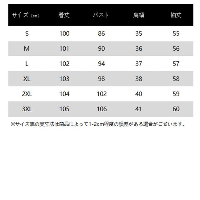 | サイズ | S M L XL 2XL 3XL |