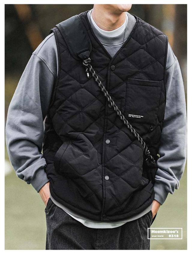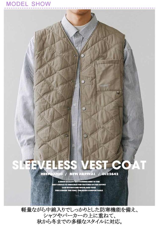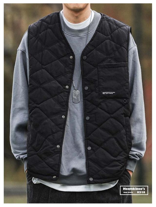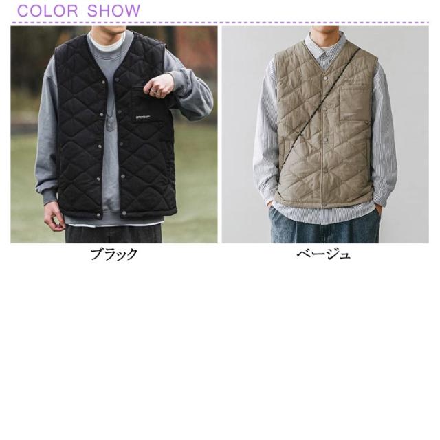 キルティング ベスト 春秋冬 中綿ベスト メンズ インナーダウン 冬 秋 中綿 アウター ノーカラー ダウンベスト メンズ 重ね着 レイヤード 暖かい キルティングベスト コート 軽量 インナー ミリタリー カジュアル 大きいサイズ キルティング ブラック
