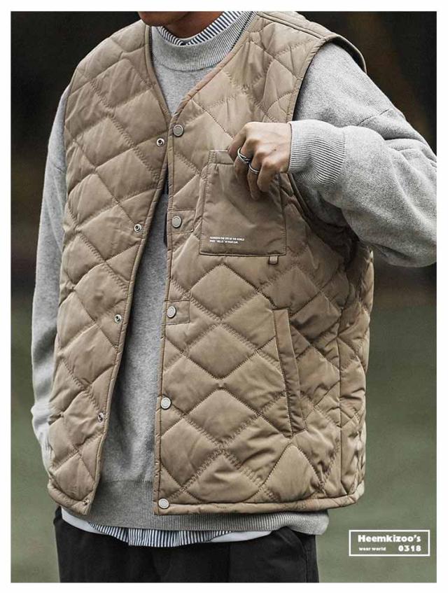 | 季節の変わり目や、肌寒い日のレイヤードスタイルに最適なキルティングベスト。 軽量ながら中綿入りでしっかりとした防寒機能を備え、シャツやパーカーの上に重ねて、秋から冬までの多様なスタイルに対応。 すっきりとしたシルエットながら、動きやすく快適なフィット感を実現。胸ポケットがちょっとしたアクセントになっています。 軽量でかさばらない為、アウターにもインナーにも利用可能。ガシガシ着て汚れたら洗える手軽さも嬉しい。 インナーやアウターに合わせて、季節を問わず幅広く活躍。耐久性、防寒性、保温性に優れたお洒落で実用的な1枚。 | |