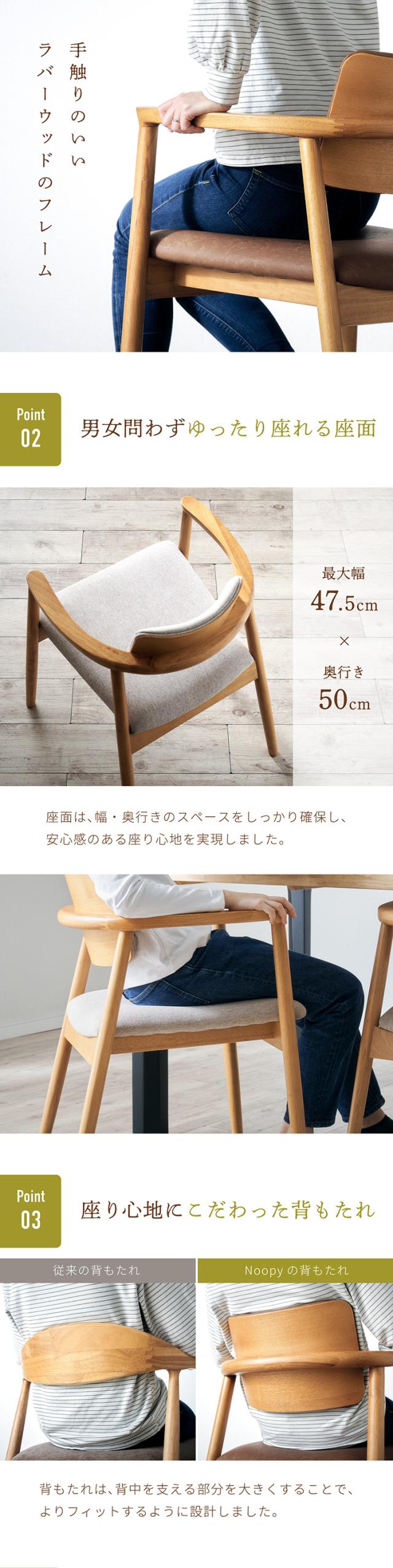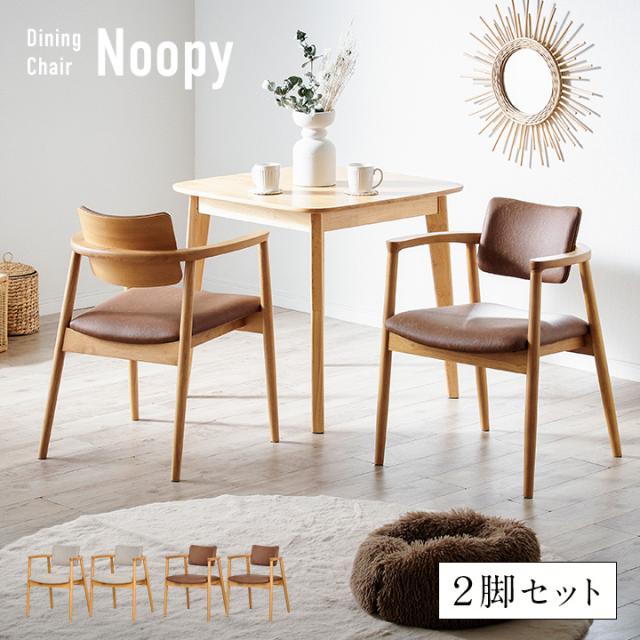 ダイニングチェア 2脚 Noopy(ヌーピー) 2色対応 肘付き ダイニングチェアー デスクチェア デスクチェアー ファブリック ダイニング 白 ホワイト 木製 おしゃれ シンプル ナチュラル 北欧 天然木 2客セット