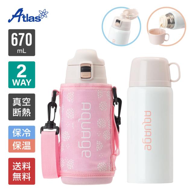 水筒 子供 670ml 620ml 保温 保冷 真空断熱 軽量 2WAY ダイレクトボトル 直飲み コップ付き ポーチ付き キッズ 遠足 ピンクベージュ アクアージュ ANW-600PB