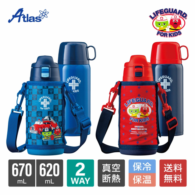 アトラス 水筒 600mL 保温水筒 保冷水筒 真空断熱 ステンレス 軽量 2WAY ダイレクトボトル 直飲み コップ付き ポーチ付き 子供 遠足 ガチャピン・ムック ライフガード LGNW-600