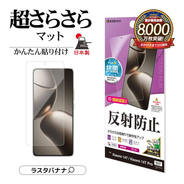 【送料無料】Xiaomi 14T Xiaomi 14T Pro フィルム 平面保護 アンチグレア 反射防止 マット 抗菌 日本製 貼り付けガイド 指紋認証対応 シャオミ 保護フィルム T3365GA53 ラスタバナナ