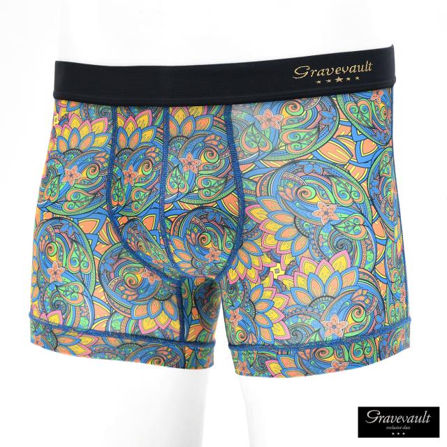 ボクサーパンツ 幾何学模様 パンツ 日本製 アンダーウェア 下着 メンズ mens(ブルー青オレンジ) 3061332