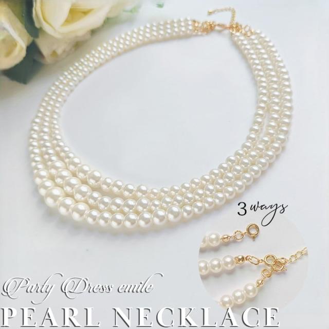 交換無料&レビュー特典 3連 パールネックレス ロング フォーマル パール ネックレス アクセサリー 華奢 レディース 結婚式 お呼ばれ 二次会 emile0337 同窓会 成人式 披露宴 入学式 卒業式