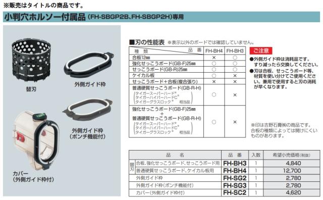 FH-SBGP2B・FH-SBGP2H専用小判穴ホルソー付属品