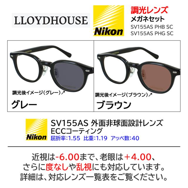 LLOYDHOUSE ロイドハウス 度付き 度なし 調光メガネ 薄型非球面レンズ