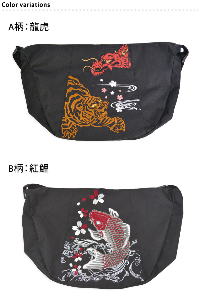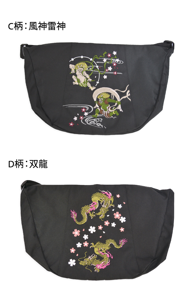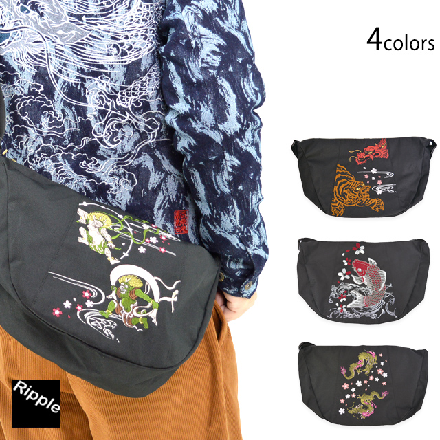 和柄刺繍メッセンジャーバッグ リップル 和風 かばん カバン 風神 雷神 龍 竜 虎 鯉