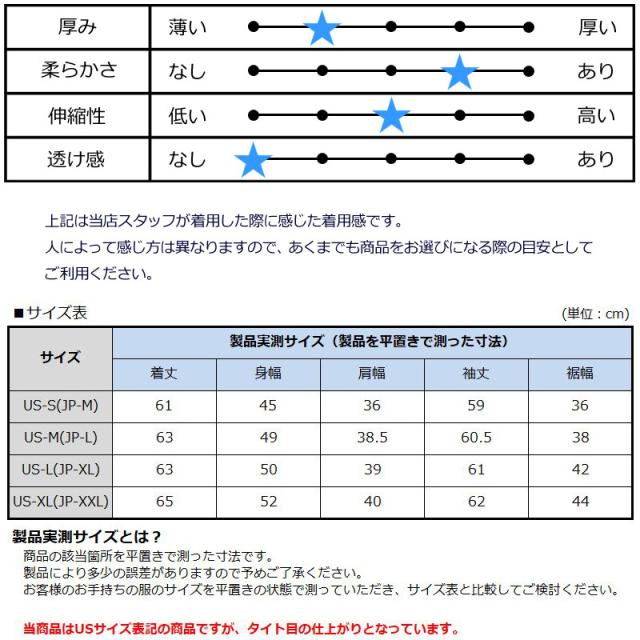 US-S(JP-M)〜US-XL(JP-XXL)