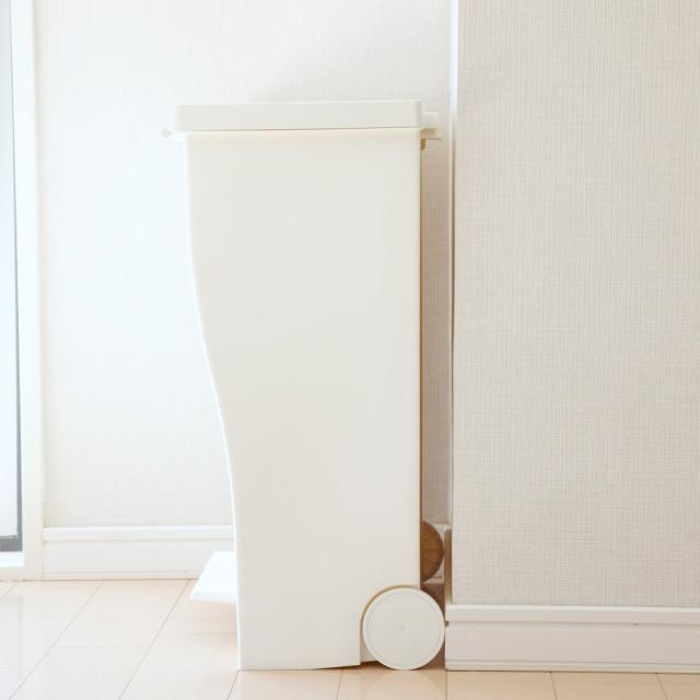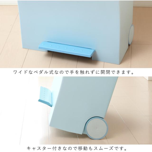 ワイドで踏みやすいペダル式で手を触れずに開閉でき、キャスター付きなので移動もスムーズです。