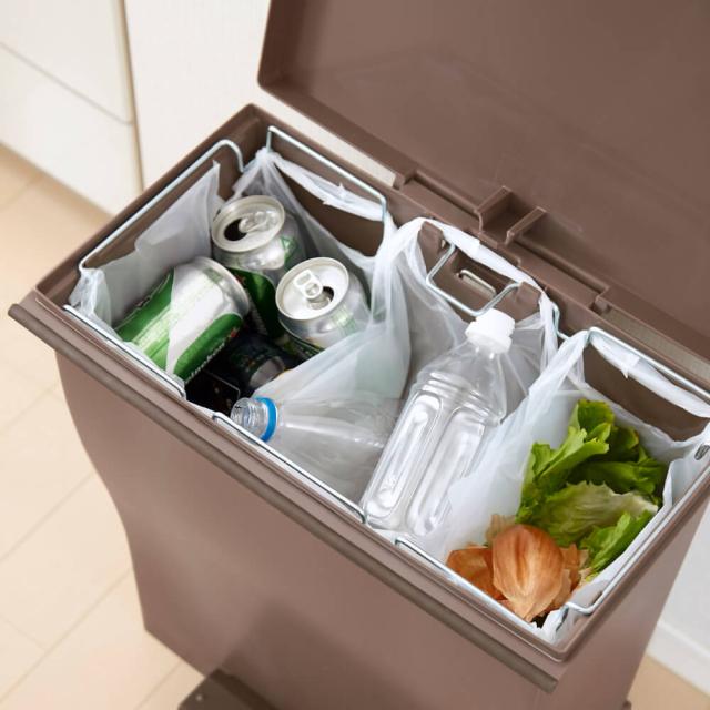複数のゴミ袋をセットすれば、1台でも横並びにゴミの分別ができます。