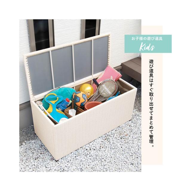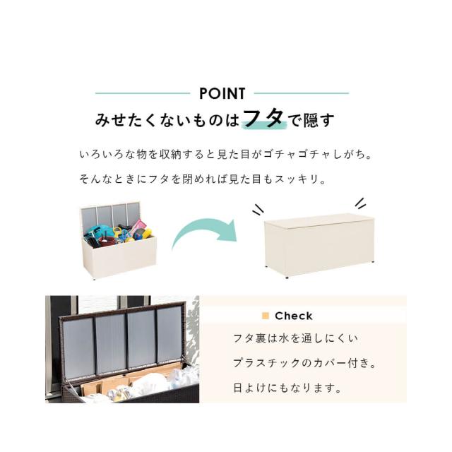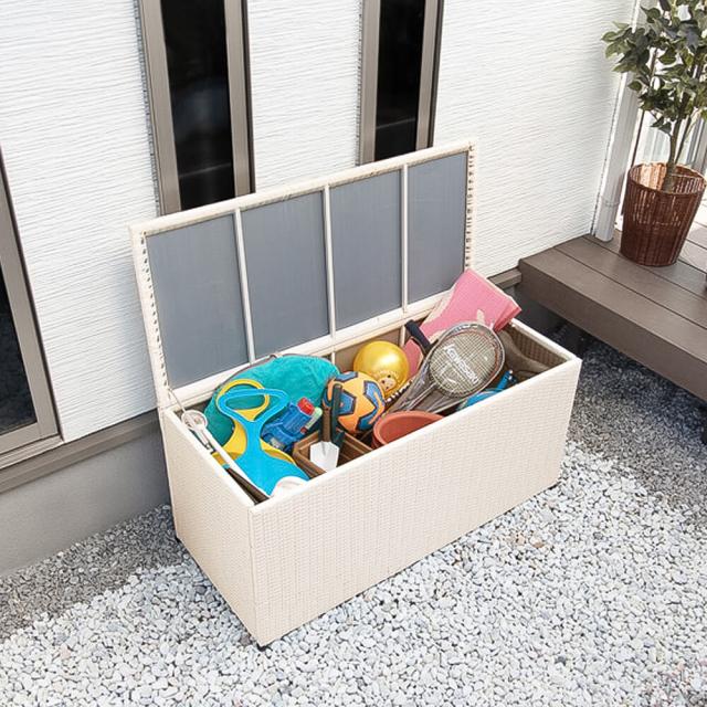 樹脂製なのでお手入れ簡単。ベランダやお庭の収納に。