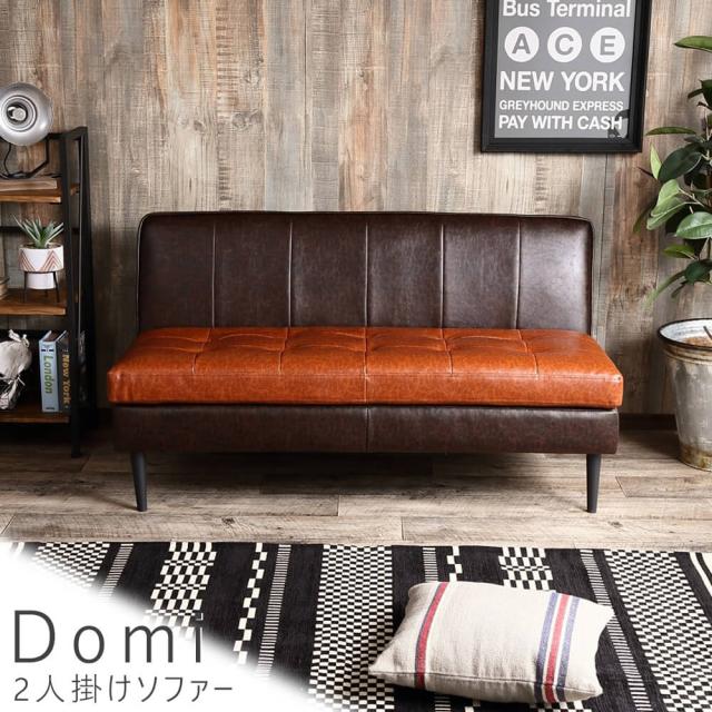 Domi(ドーミ) 2人掛けソファー ソファ ソファー 2人掛け 二人掛け 二人用 送料無料 おしゃれ ブルックリン フェイクレザー PVC レトロ ECORO Comet ブラウン ナチュラル シンプル 北欧 レトロ 西海岸 ミッドセンチュリー