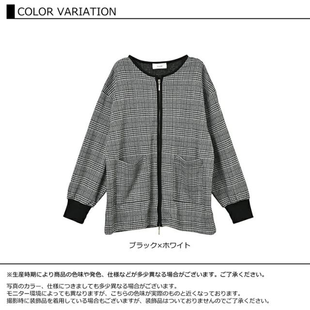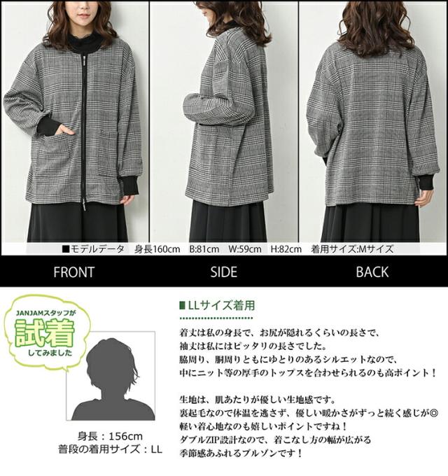 送料無料※沖縄/北海道対象外 大きいサイズ レディース コーディガン 長袖 ジップアップ 千鳥格子柄 裏シャギー ブルゾン アウター M/LL/3L/4L/5L ゆったりサイズ ぽっちゃり女子 プラスサイズ