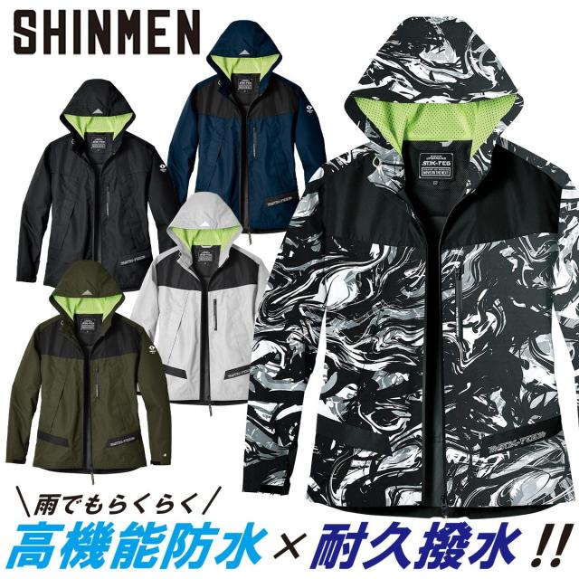 2024年秋冬新作 シンメン 07430 シェーダーフェイスシェルフーディ 軽量防寒 高機能防水 耐久撥水 防風 透湿 メンズ カジュアル ワークユニフォーム S~5L 作業服 作業着 かっこいい おしゃれ