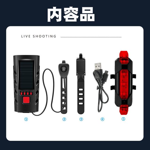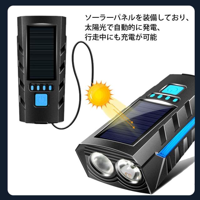 自転車 ライト 自転車ライト ソーラー充電 ベル テールライト付き LED 高輝度 小型 USB充電式 明るい IPX7防水 後付
