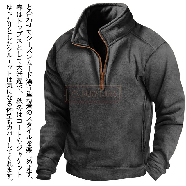 最安挑戦 春新作 送料無料 新作 パーカー メンズ ハーフジップ パーカー 春秋冬 長袖 ハーフジップ ポロシャツ 軽量 立ち襟 プルオーバーパーカー 無地 ハイネック トレーナー スウェット ハーフZIP Poloシャツ カジュアル