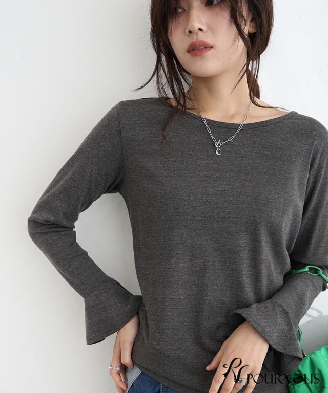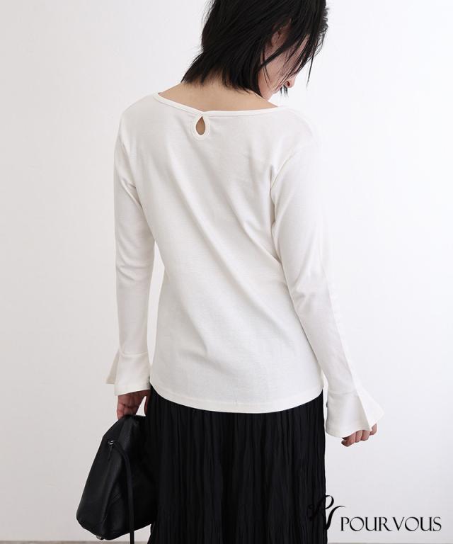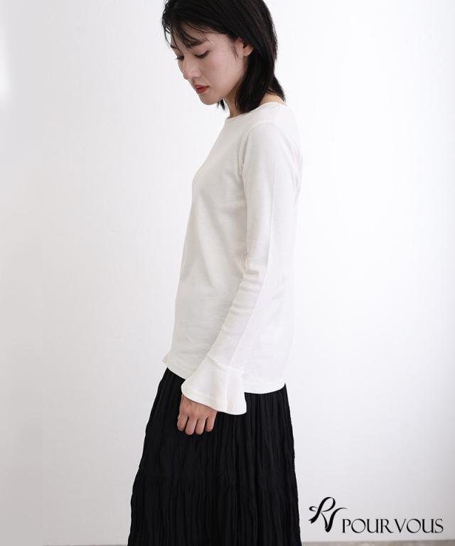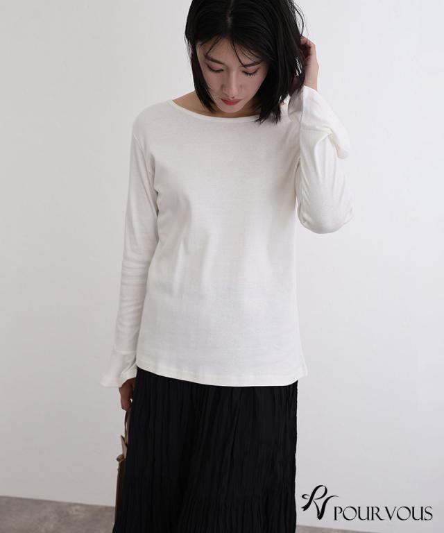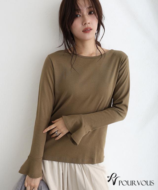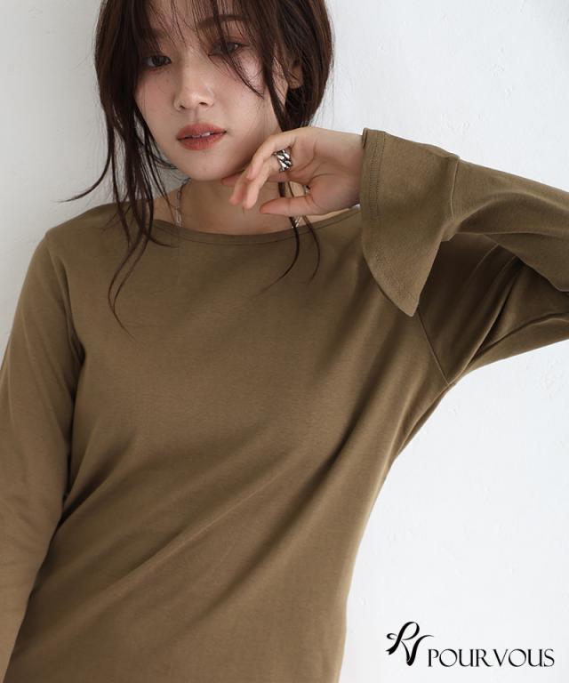 綿フライス袖口フレアトップス/242241826